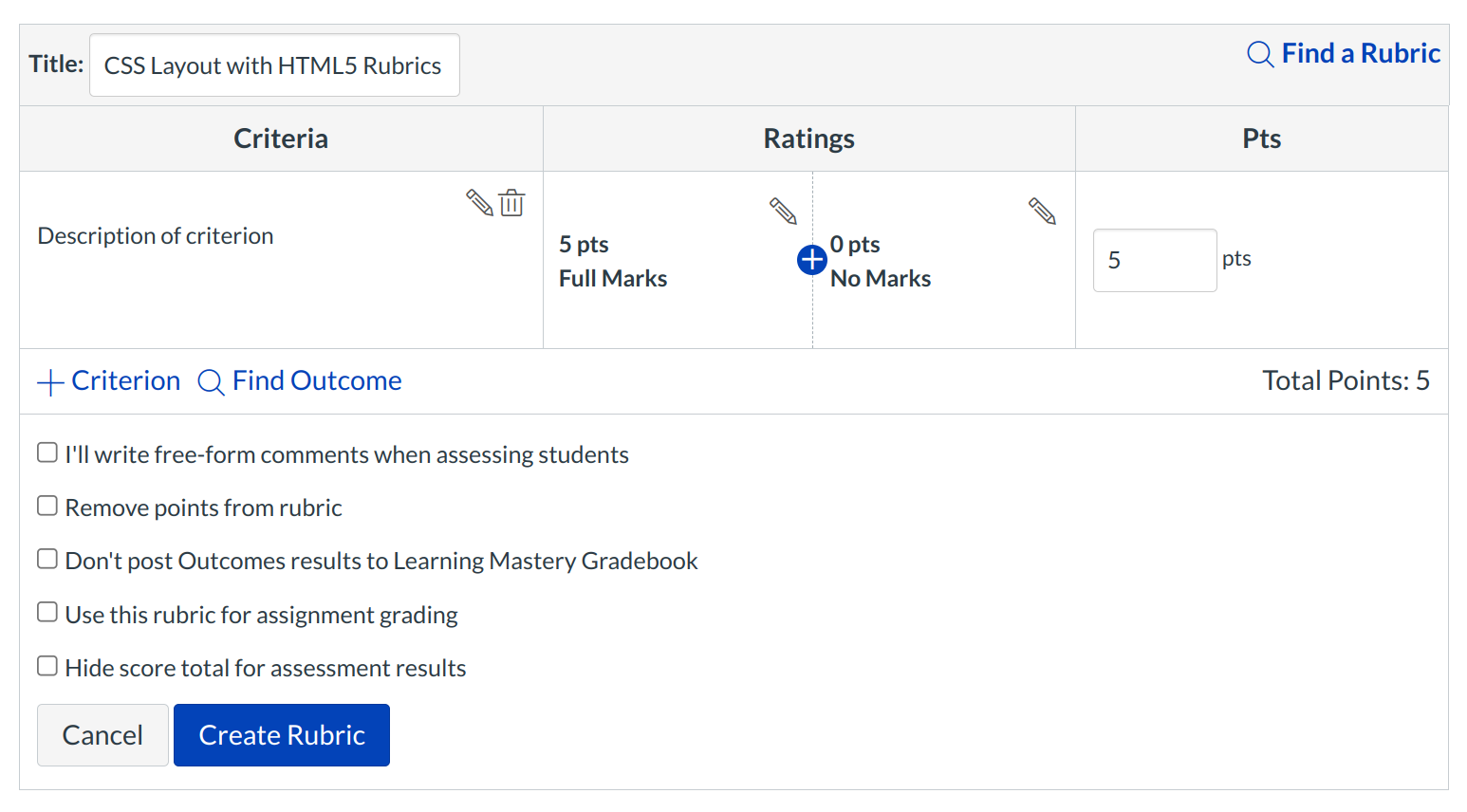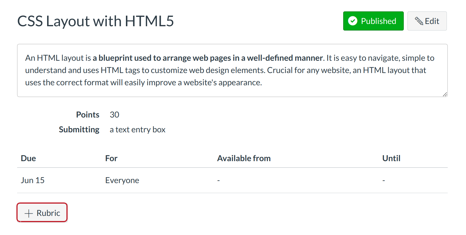 You can create or edit or find a rubric to add to an assignment.