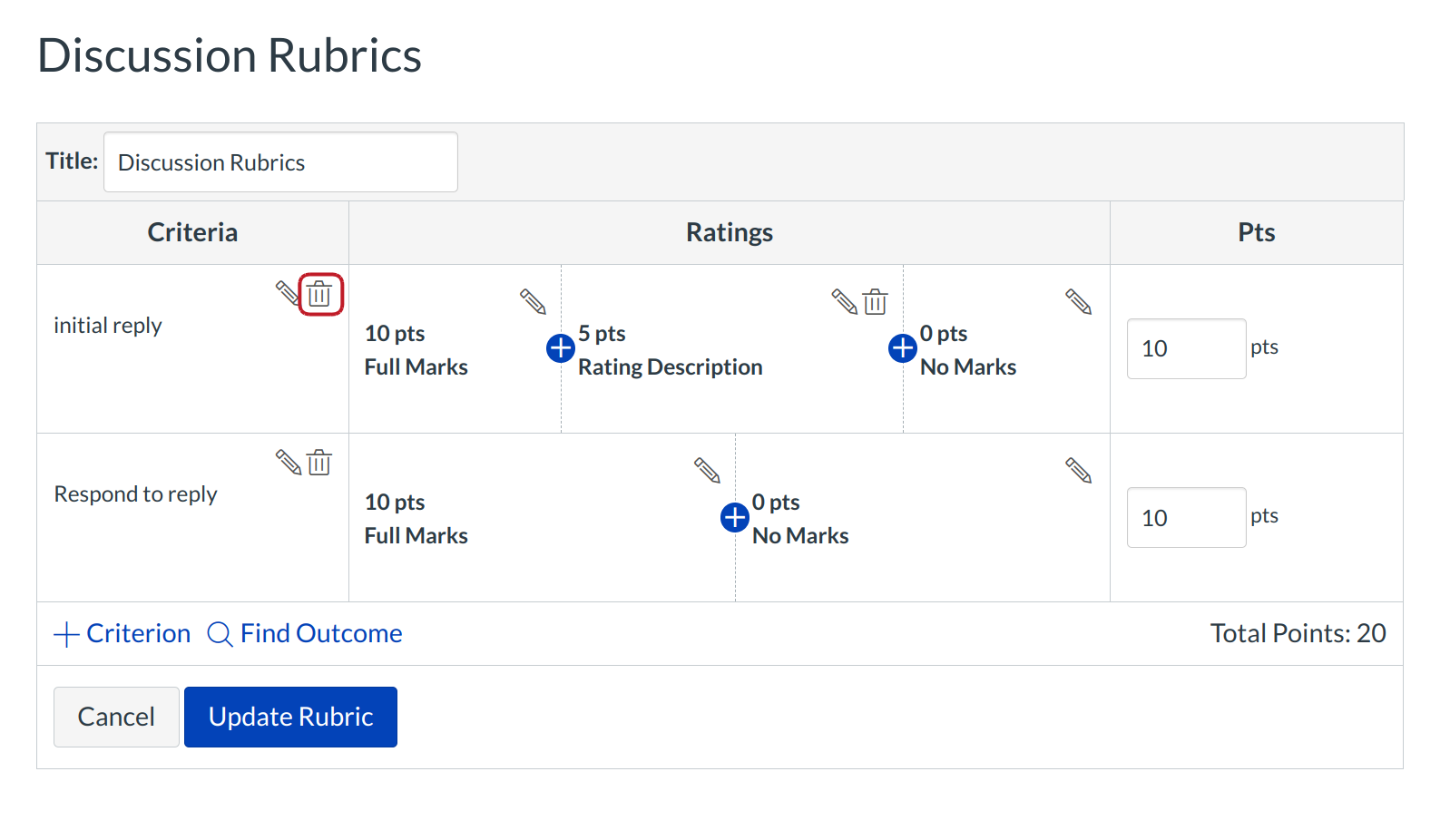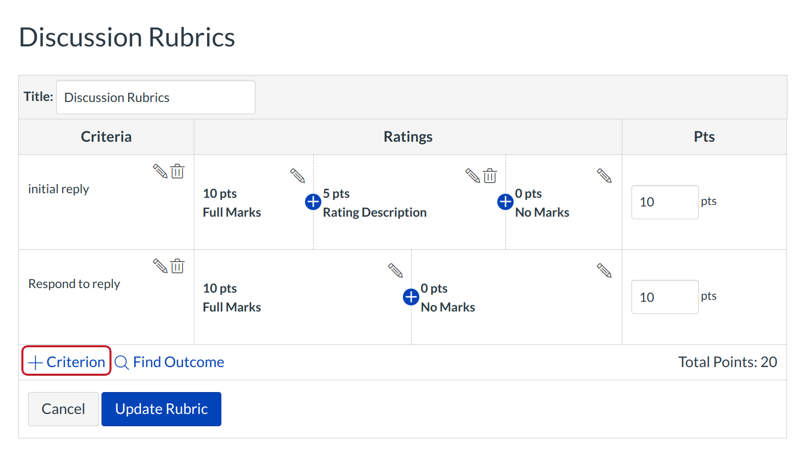 Click the Add Criterion link to add a new criterion to the rubric.