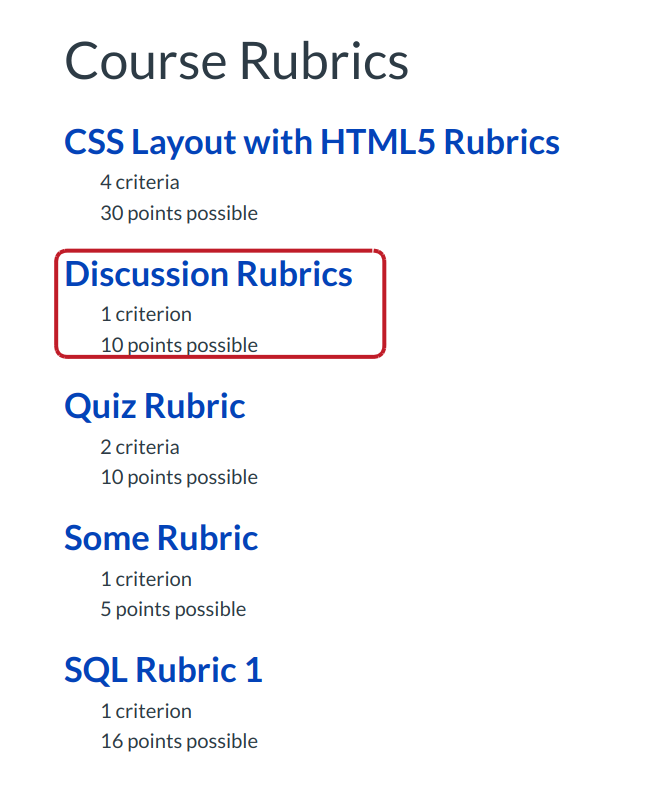 Click the Rubrics Title.