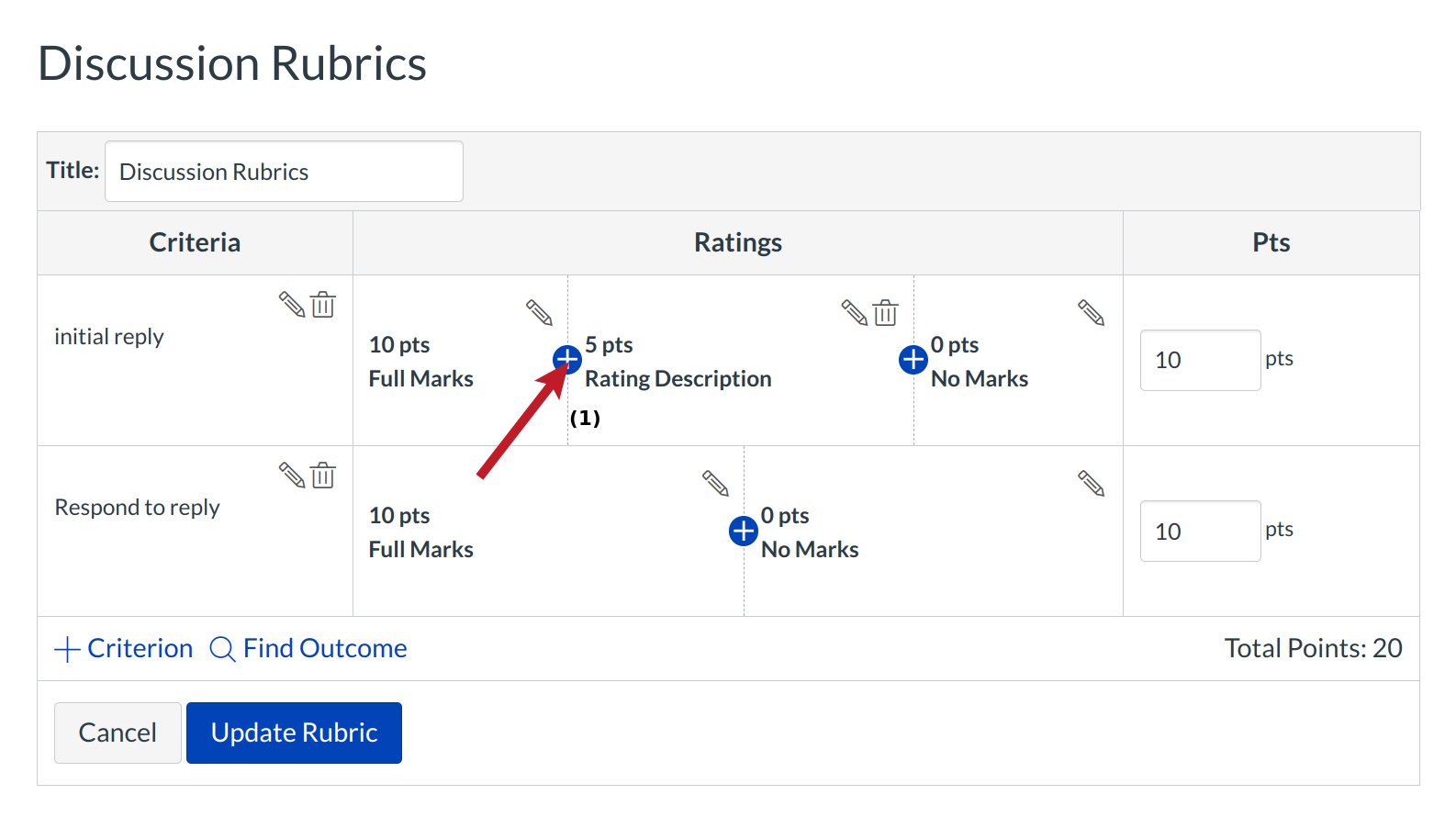 Click the Update Rubric button.