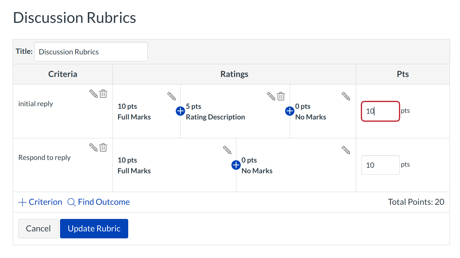 Edit the point value of a criterion by typing in the points field.