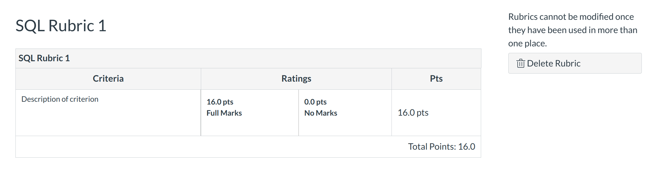 Rubrics that have been used more than once cannot be modified on this screen but they can be deleted.