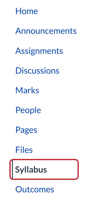 Click the Syllabus link in the course navigation.