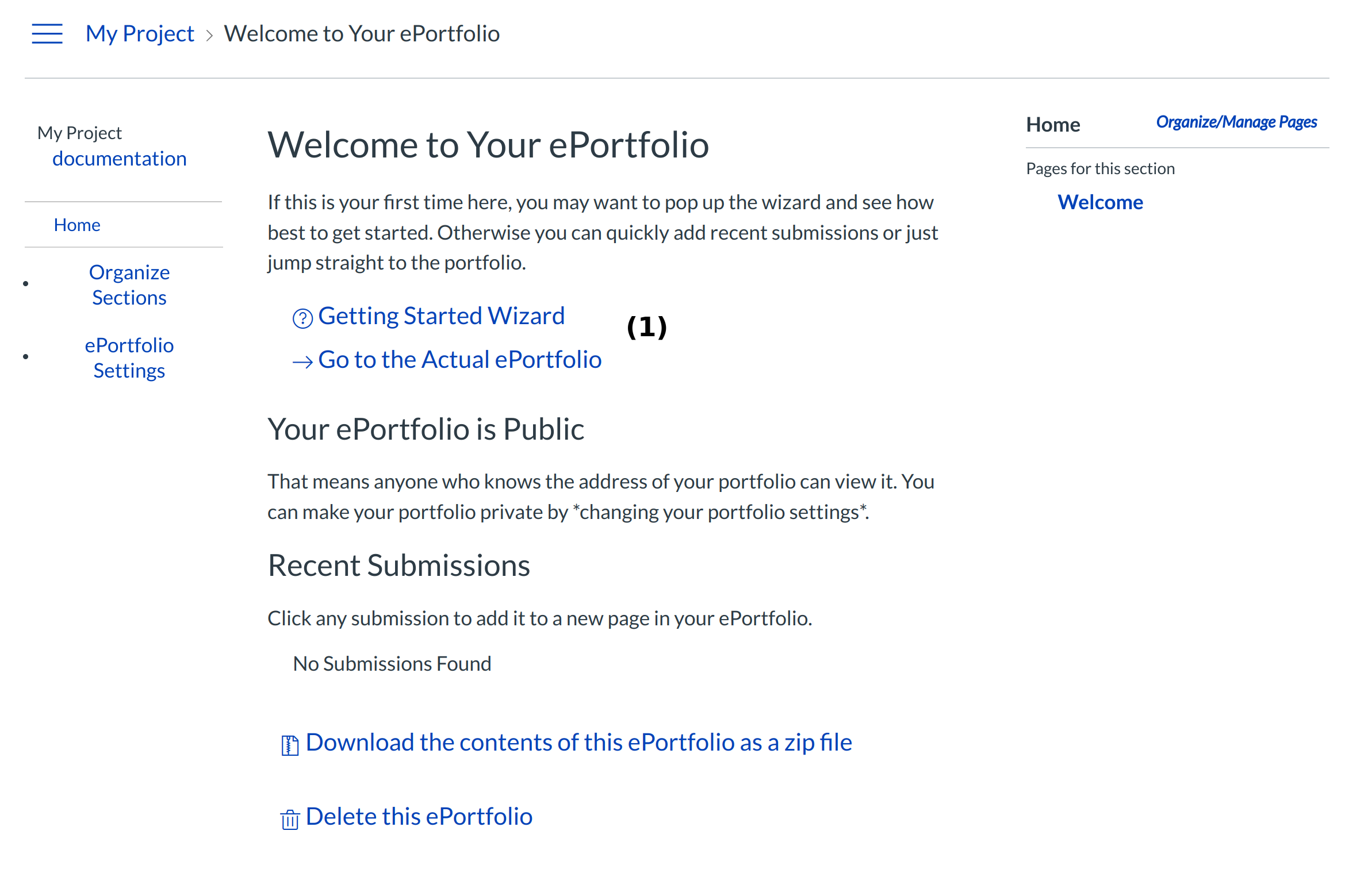 Once the ePortfolio is created, there are several options for creating content for your portfolio, including a wizard that will walk you through your creation, step by step [1].