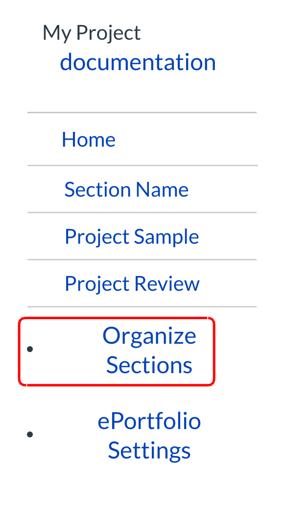 To edit a new ePortfolio Section, click the Organize Sections link.