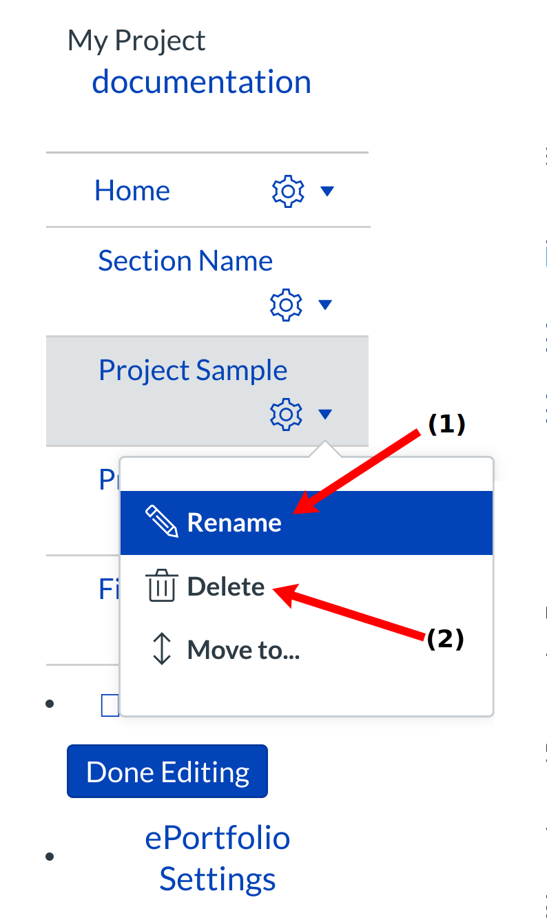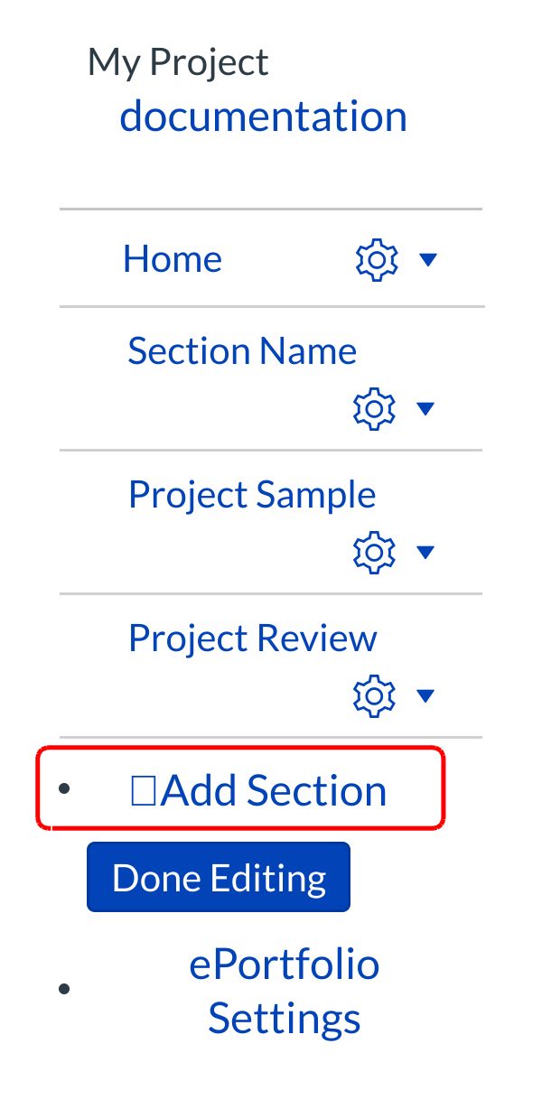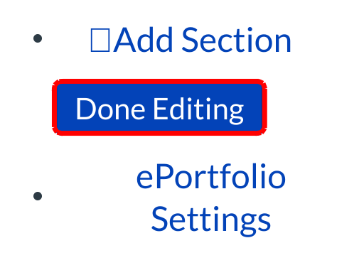When you are finished adding and/or editing your new ePortfolio Sections click the Done Editing button.