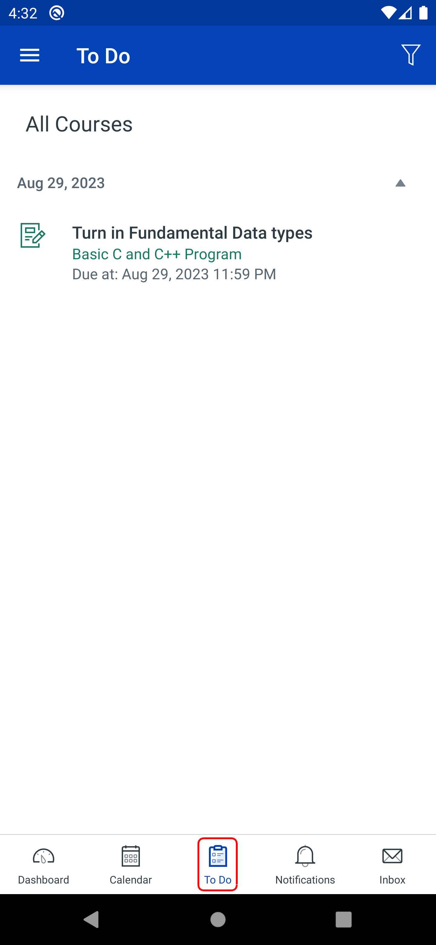The To Do List gives you a quick view of upcoming course activities that you haven't completed yet.