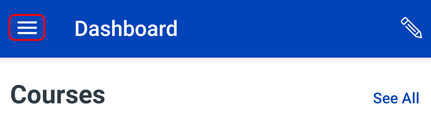 The Dashboard defaults to the Courses tab and displays all your current courses.