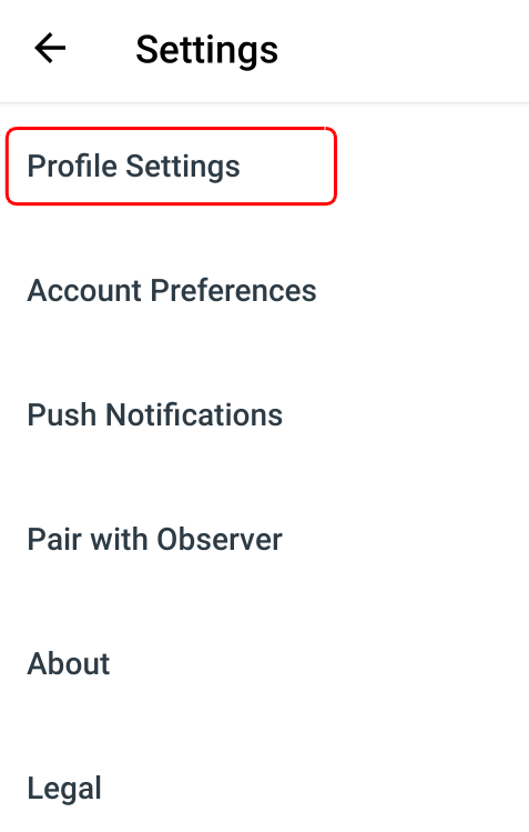 Tap the Settings link in the Profile page.