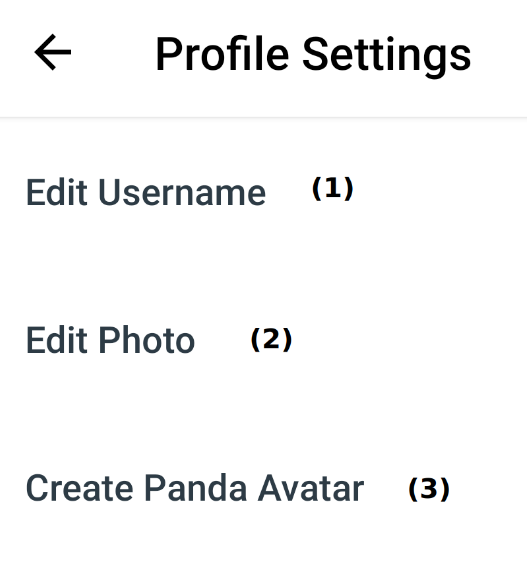 Click Edit Username to edit the username [1],click Edit Photo to change the user photo [2], click Create Panda Avatar to create avatar for user [3].