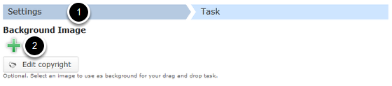 You can add an optional background image for the task in the Settings [1] tab by clicking the ‘+’ button under the Background Image [2] button as shown in the above image. You will get a screen similar to the one shown in the below image.