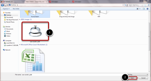 On the above screen, go to the required folder, select the required image [1] and click the Open [2] button. You can see image being uploaded as shown in the below image.