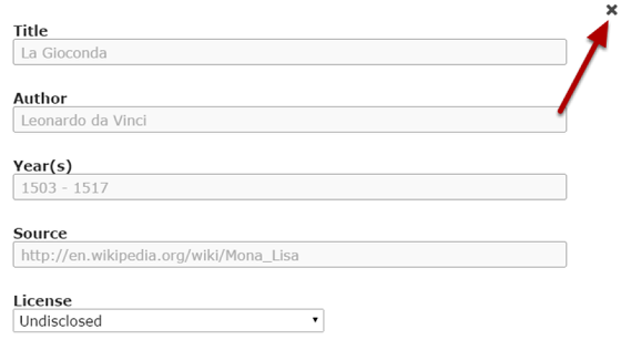 You can enter the image's copyright details on the above screen and click the Close button to update it. You can remove the uploaded image by clicking on the Remove file button shown on the below image.