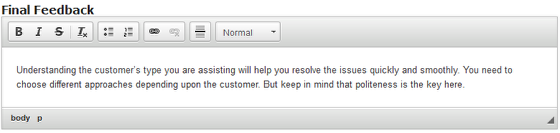 Similarly, Final Feedback is the feedback that appears when the user selects the correct answer at anytime. This is also the feedback that will be shown when the user clicks the Show button after selecting any wrong answer in the second attempt. Just type the contents of the page in the Final Feedback field as shown in the above image.