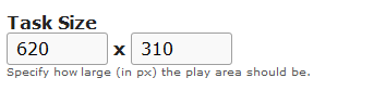 You can set the size of the task using the Task Size checkboxes shown above. By default, it is set to 620 X 310 pixels.