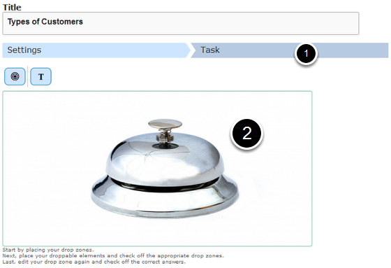 Once you've updated all the information in the Settings tab, move to the Task [1] tab shown in the above image. You can see a preview [2] of the uploaded image in the image.