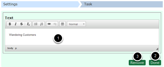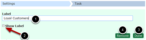 You can type in the Text [1] field to add a box with a label or question. You can also change the format of the title. Once you've entered the label, click the Done [2] button. You can also remove the label by clicking the Remove [3] button shown above. Once you click the Done button, you will see the below screen.