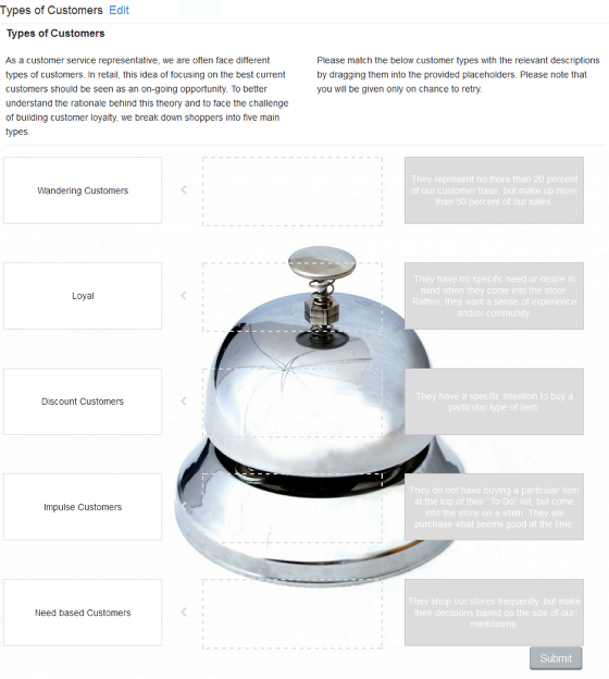 You can use this type of question where you want the students match the answers with the relevant questions in an interactive manner