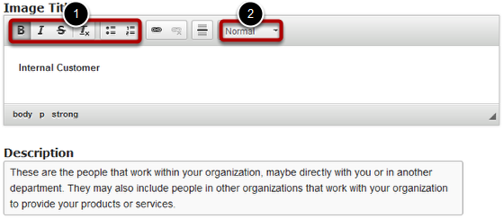 You can also change the size of the description text by clicking the Paragraph Format [2] drop down menu. The sizes available are: