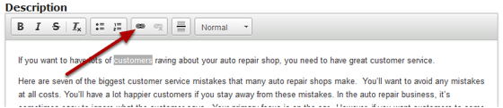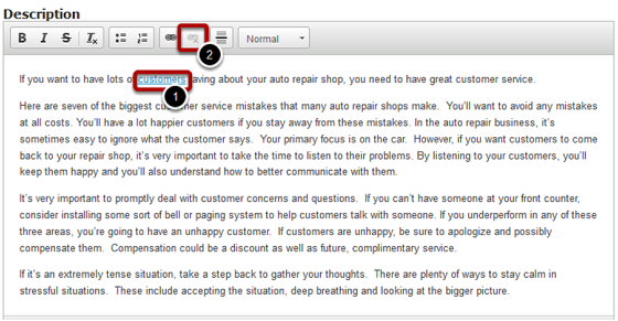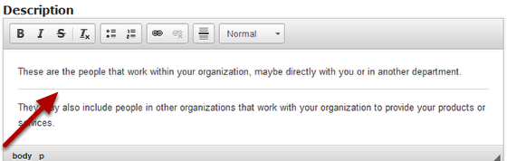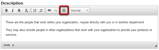 To change the format of the description text, just select the contents, click the any of the six formatting buttons or Paragraph Format drop down menu and select any one of the options.