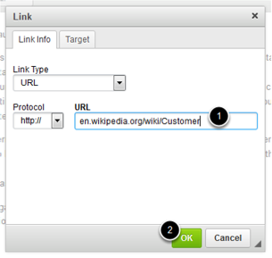 Once you’ve selected the target window, click on the OK button to save the changes as shown in the above image. You can see the hyperlink being added to the content [1] as shown in the below image.