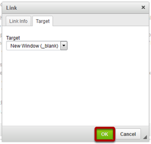 You can also select where the linked website should appear. To do that, go to the Target tab on the above screen which will be similar to the one shown below.