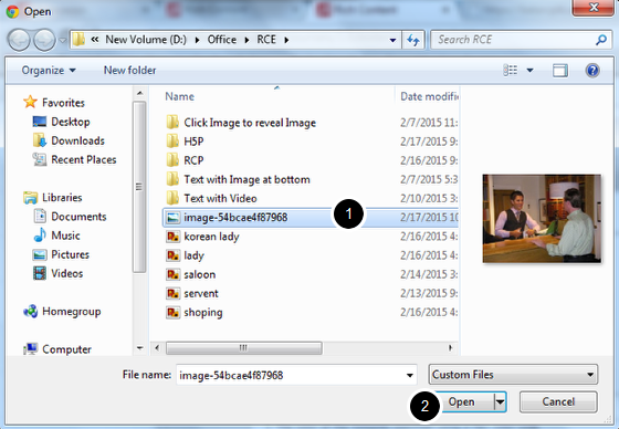 On the above screen, select the required image [1] and click the Open [2] button.