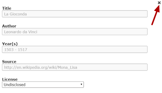 Once you click the button, you will see the above screen. You can enter the image's copyright details on the above screen and click the Close button to update it.