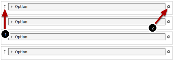 In some components, there may be many fields which can be organized or removed. For example, on the above image, we have 4 answers. To change their orders, just click the double headed arrow [1] button on the left side of the answer, and drag and drop it to the new location.