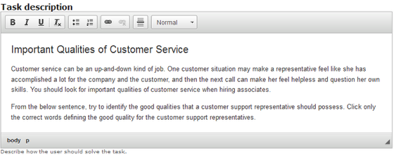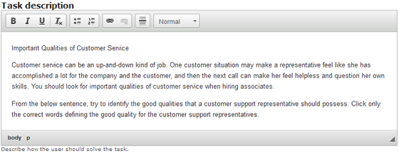 In some components, the title field may not be provided separately. For example, the Mark the Words component doesn't have the title field. However, you can use the Task description field in this component to add a title for the page. To do that, type the contents normally in the Task description field as shown above. But make sure you type the title in a separate line.