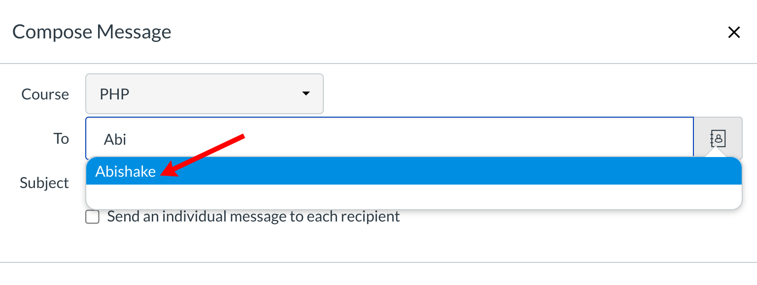 Note: If you do not want a student to see all recipients in the message, click the Send individual messages checkbox.