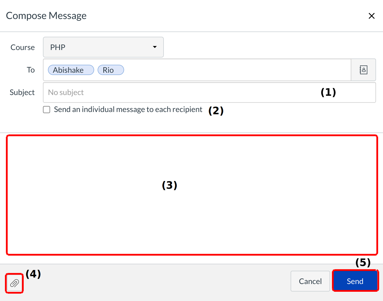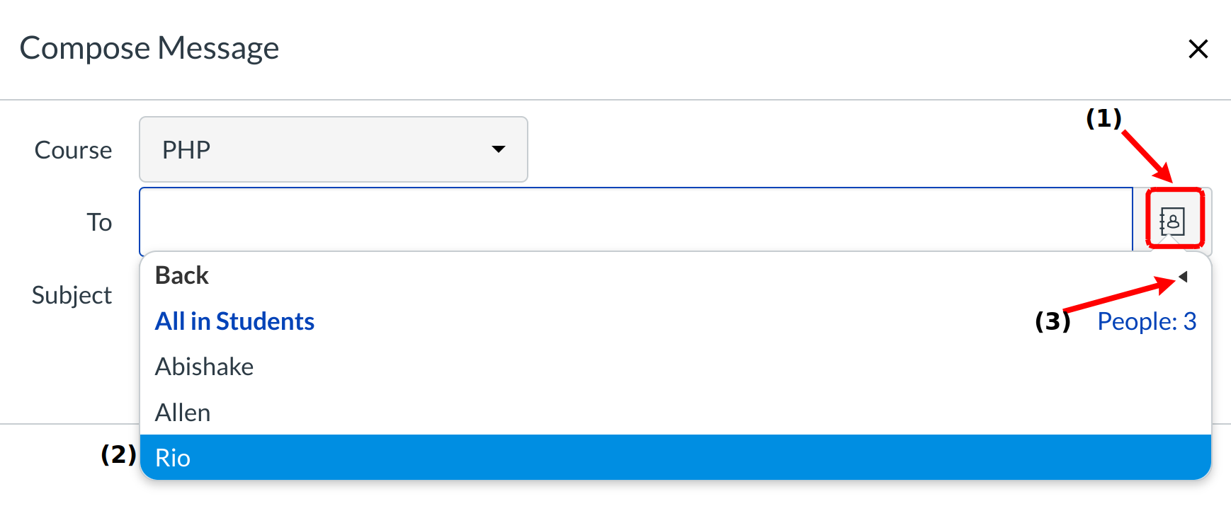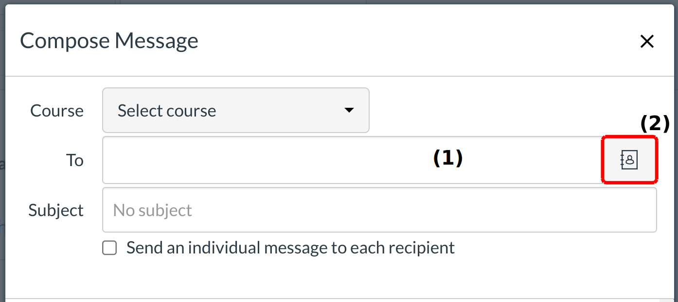 Add your recipient in the To field. You can type the recipient's name in the To field [1], or you can use the Course Roster [2].