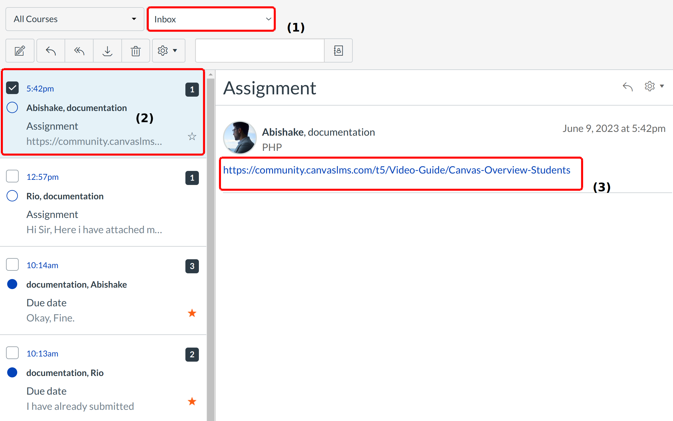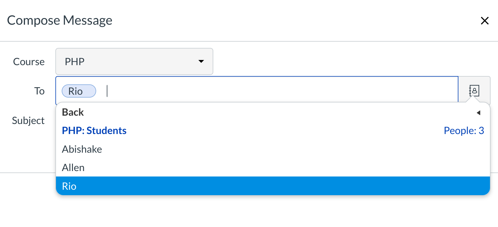 Note: If you filter your Course list by Concluded Courses, you will only be able to compose messages to instructors.