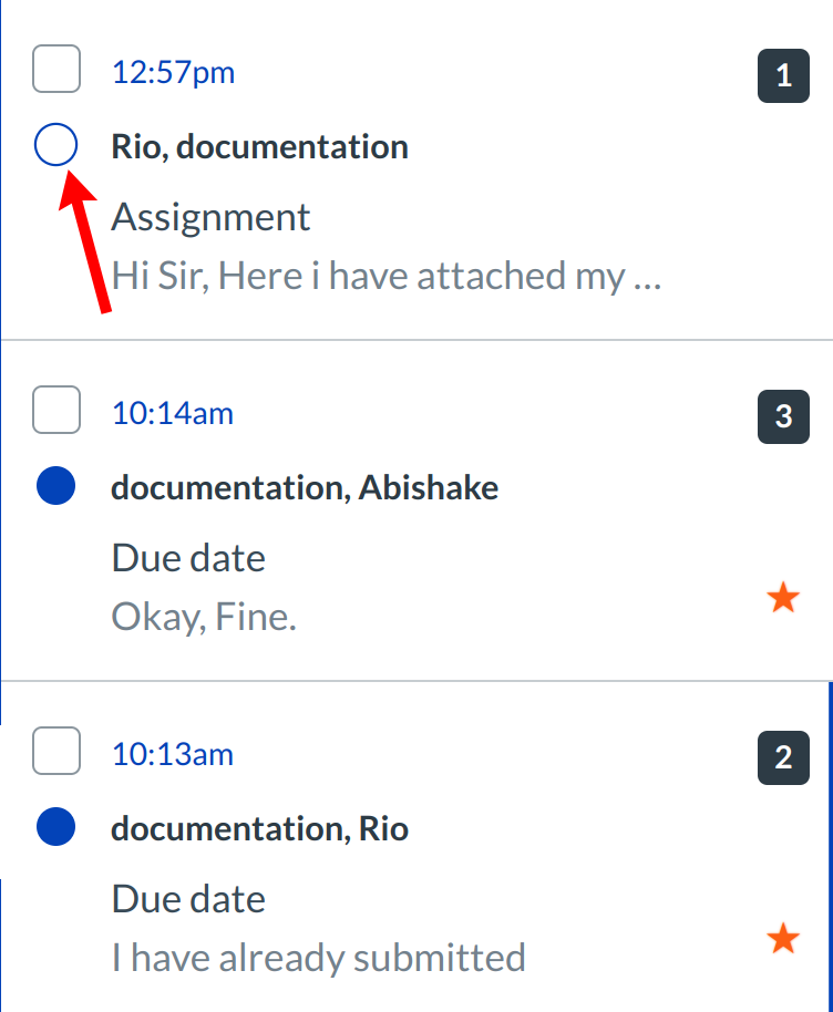All unread messages have a blue dot next to the message[1]. Once a Conversation has been read, the blue dot disappears.