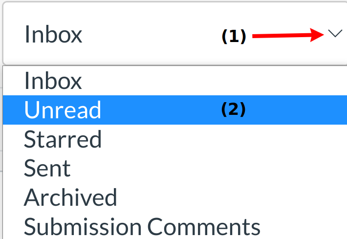 To view only unread messages, open the the Inbox drop-down menu [1]. Select the Unread [2] link.