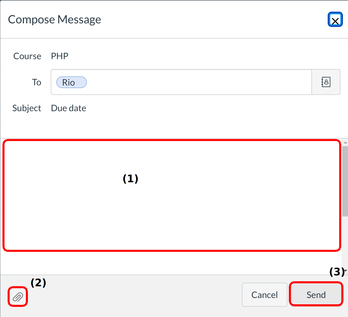 Type your reply in the message field [1]. You can attach a file or media [2]. When you are ready, click the Send button [3].
