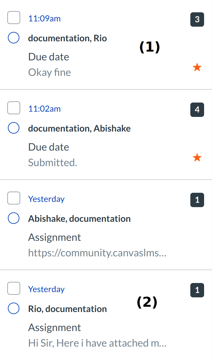 The Conversation Inbox is organized chronologically from newest to oldest with the newest Conversations [1] appearing on top and the older Conversations [2] appearing towards the bottom.