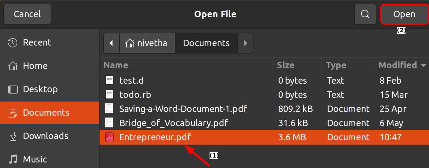 Browse personal files on computer and select the file or files you wish to attach [1]. Double click the selected files or click the Open or Choose button [2] to upload the files to the discussion reply.