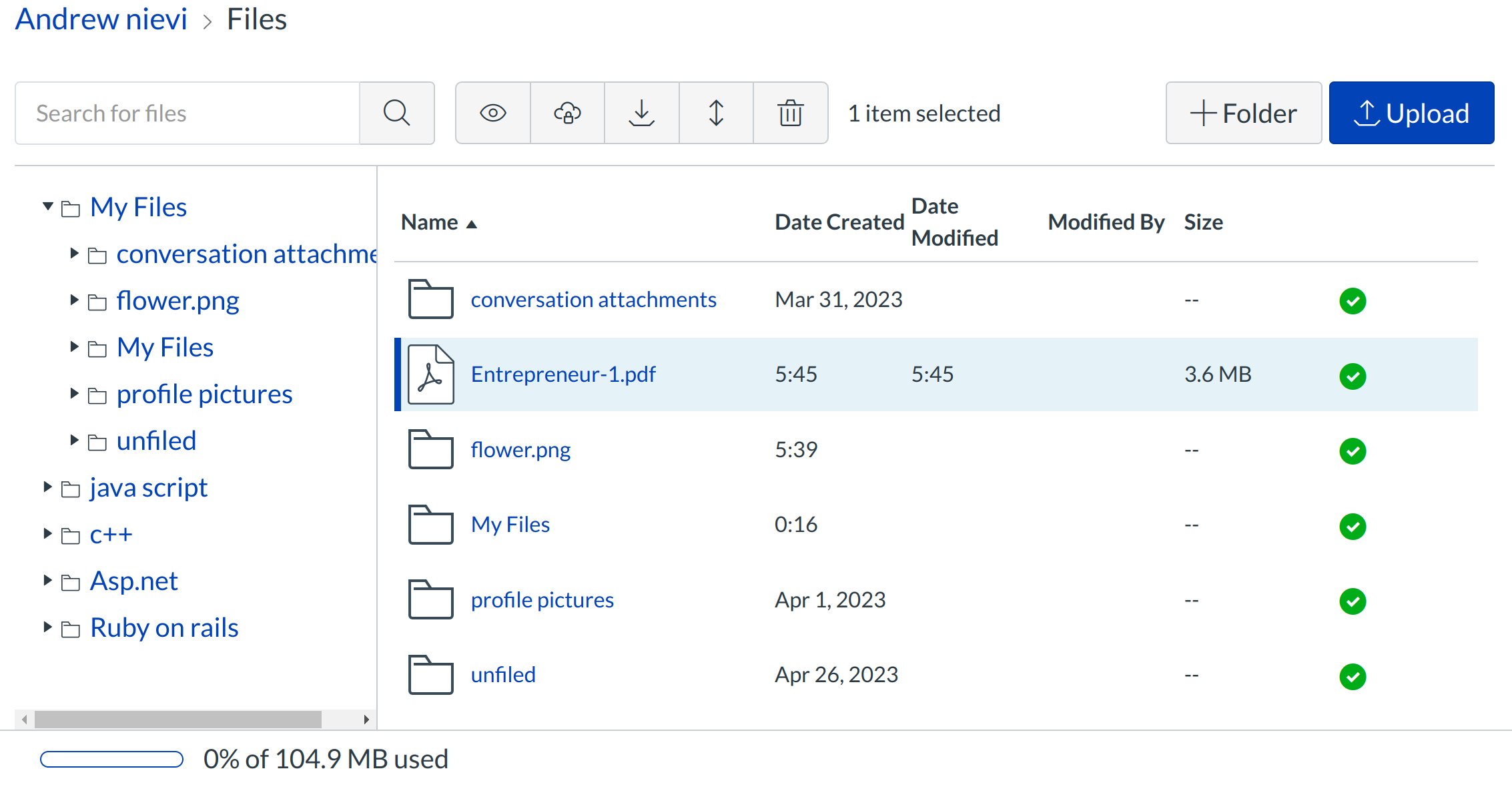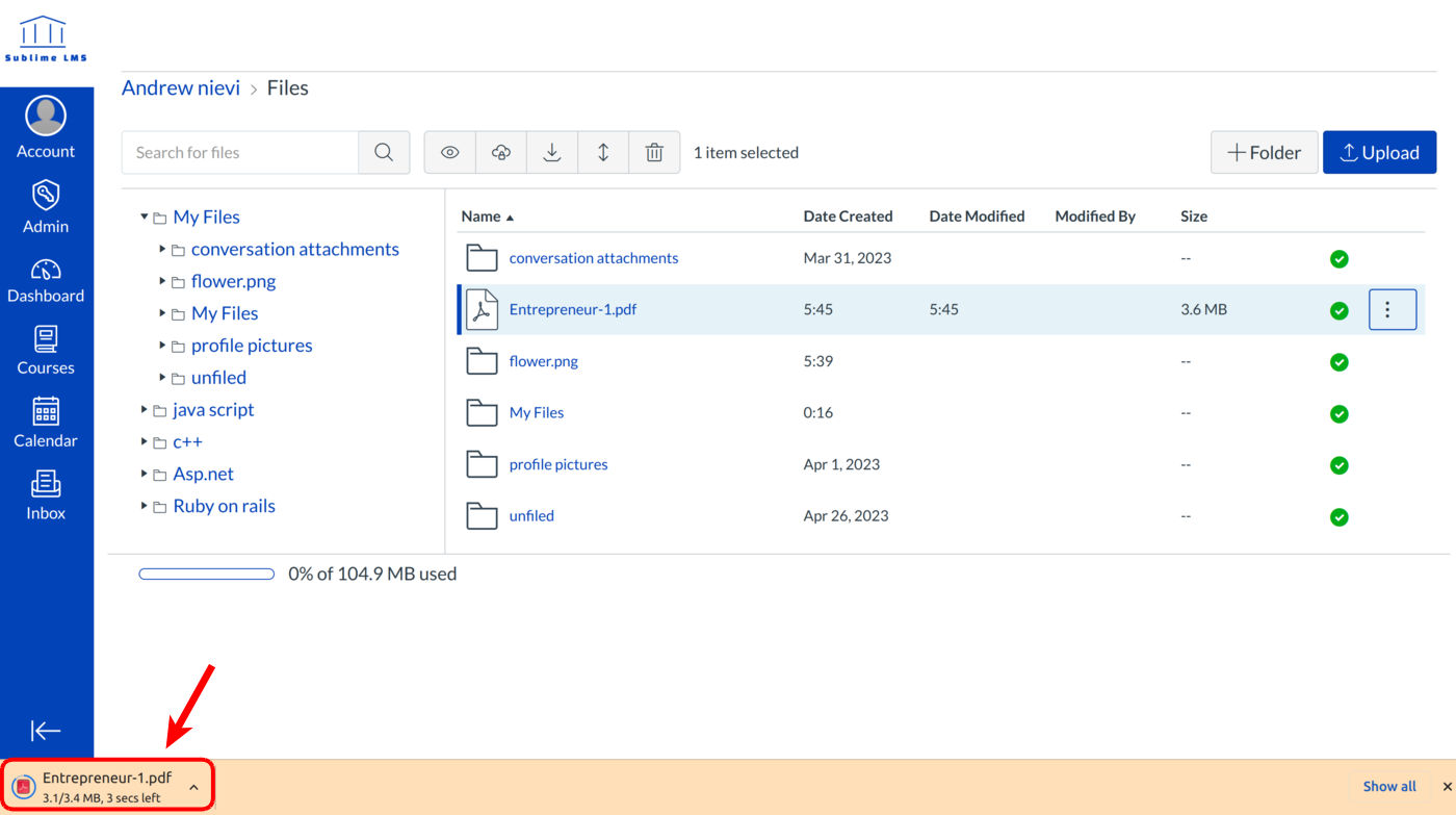 To access your personal files, click the Account Navigation link and then the Files navigation link.
