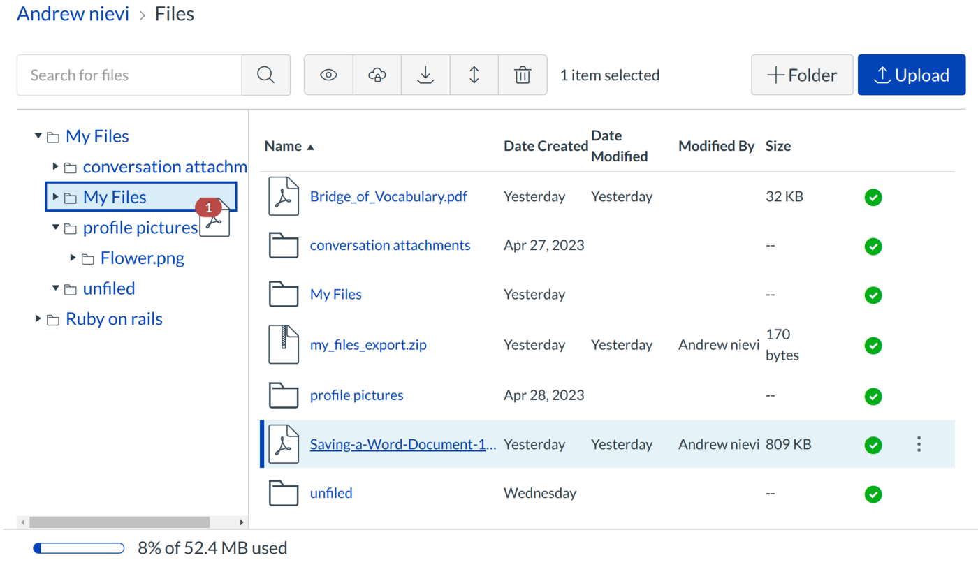 Note: Files are organized in alphabetical order. While you can still move files into folders, you cannot rearrange the alphabetized structure of the files and folders.