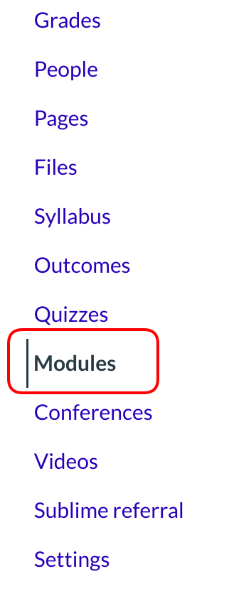 Note: If you can't see the Modules link, your instructor may have hidden it from the Course Navigation.