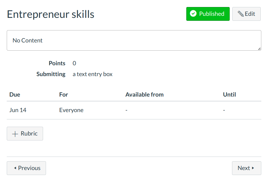 Note: If your instructor has placed an unpublished quiz in the Module, you will not be able to see the points possible or the quiz questions until the quiz has been published.
