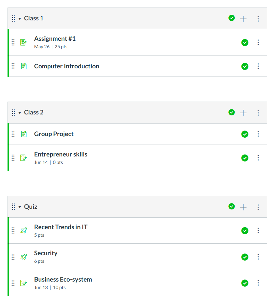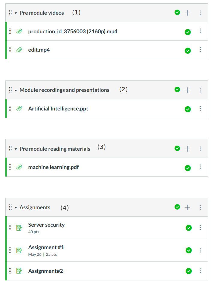 Each Module can contain files, discussions, assignments, quizzes, and other learning materials the instructor decides to add.