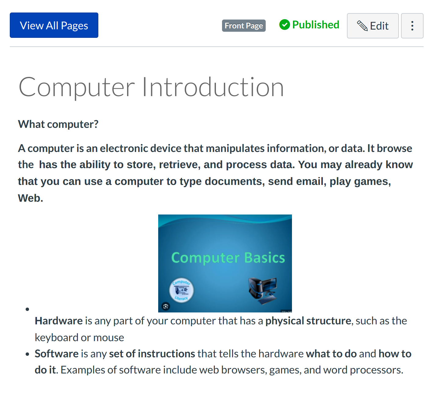 Add content to your page using the Content Selector [1]. Edit the content and add links and media using the Rich Content Editor [2] or switch to the HTML Editor [3].