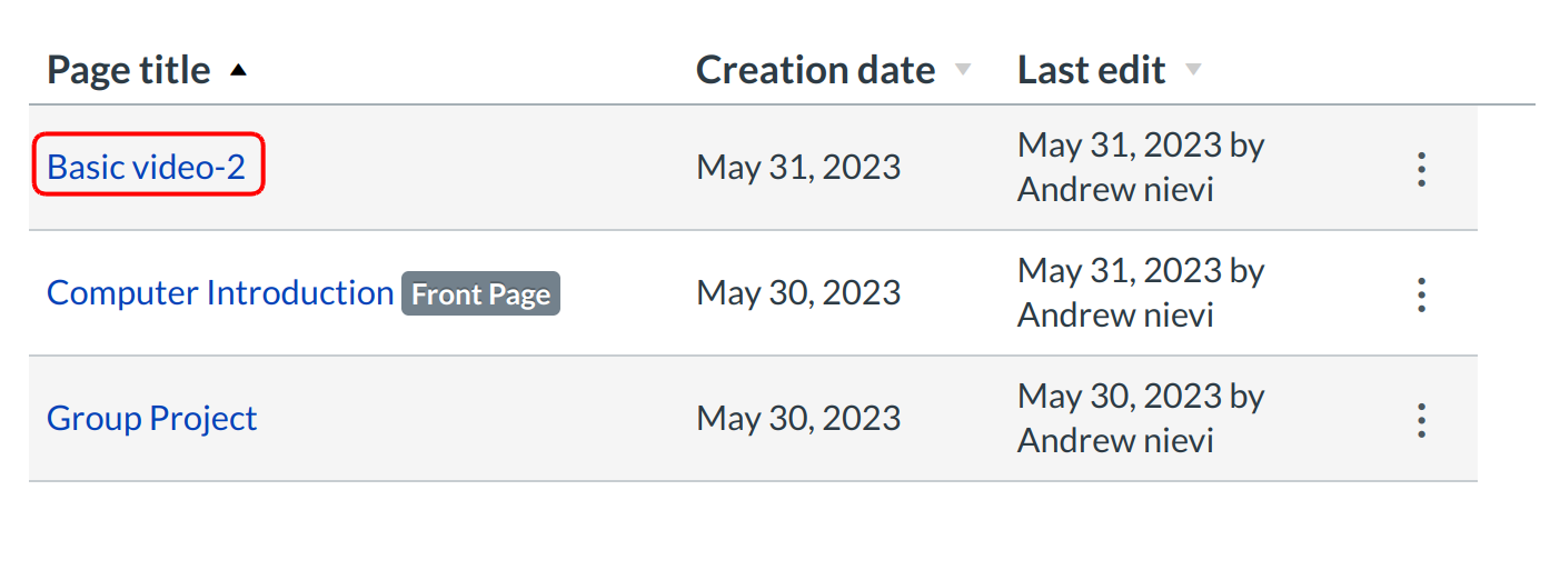 Click the title of the page you want to edit.