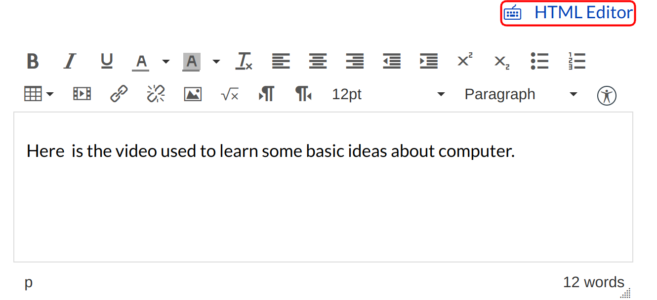Click the HTML Editor link to launch the HTML editor.