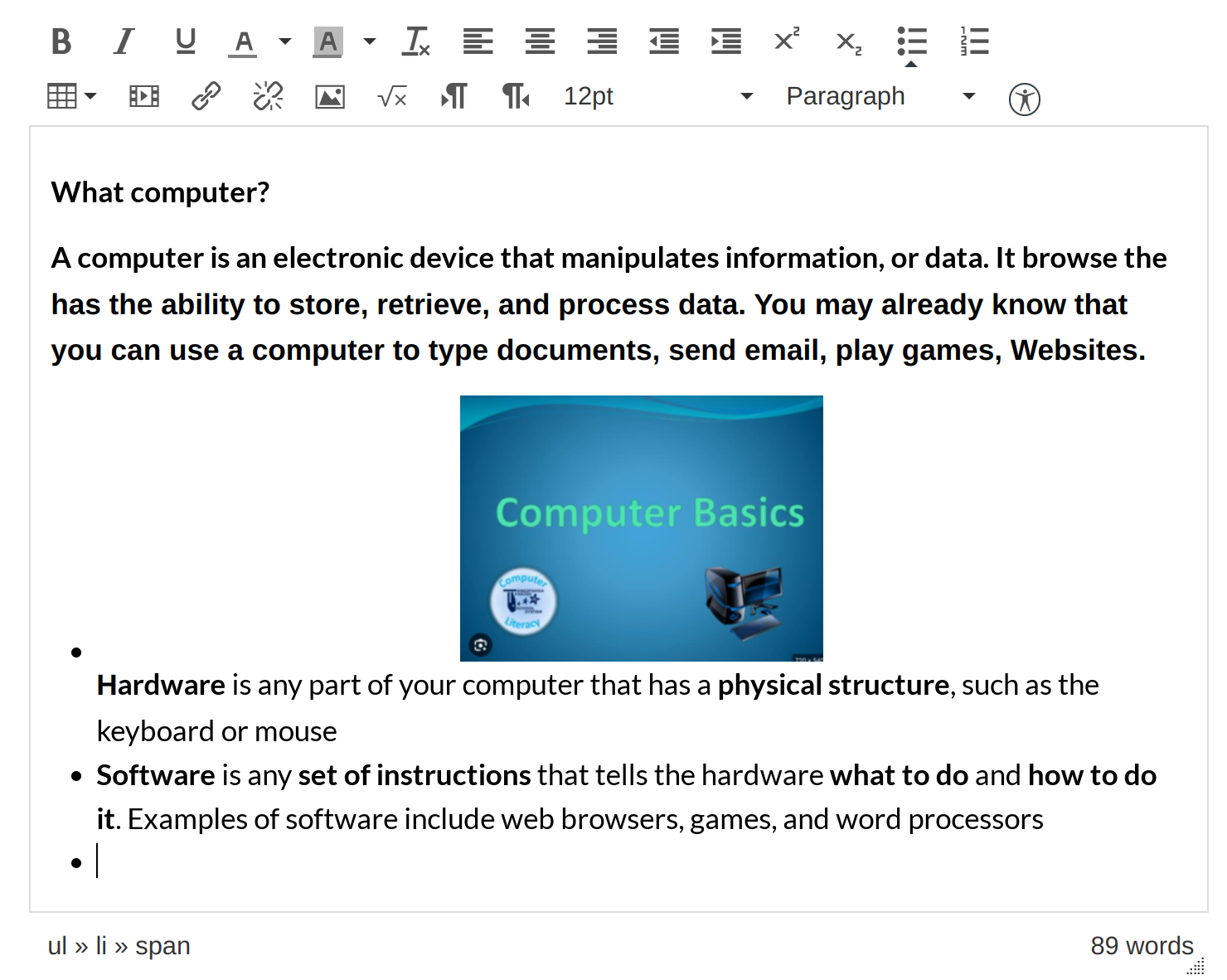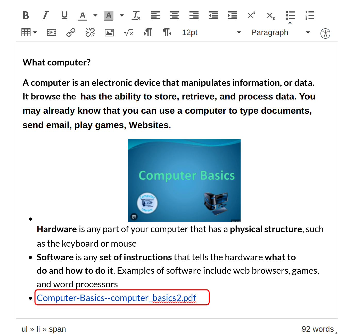 In the Rich Content Editor, place your cursor where you wish to insert the PDF document.