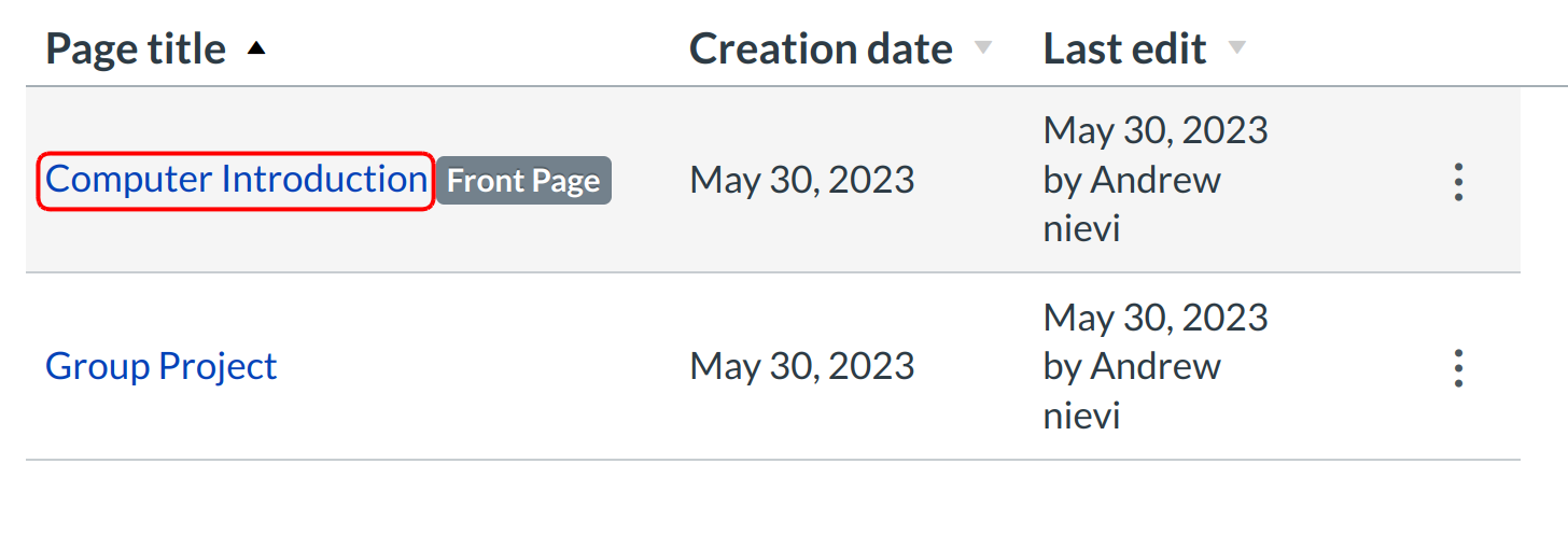 Click the title of the page you want to edit.