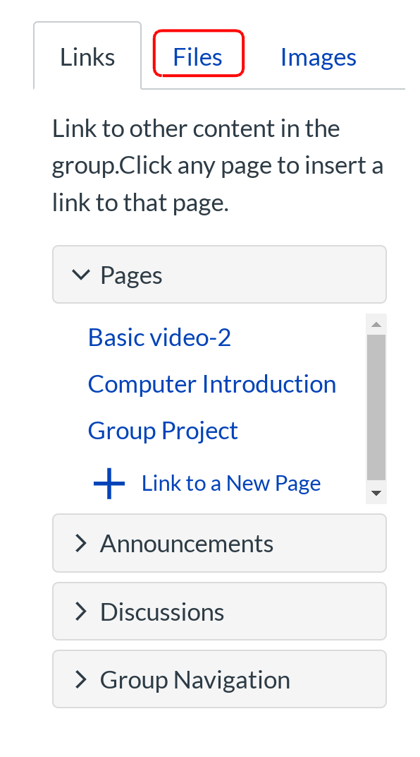 In the Content Selector, click the Files tab.