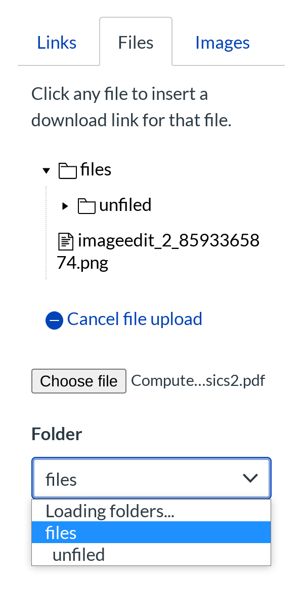 Click the Course Files drop down menu and choose where you would like to store the file.